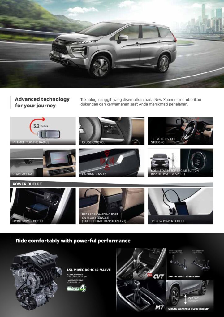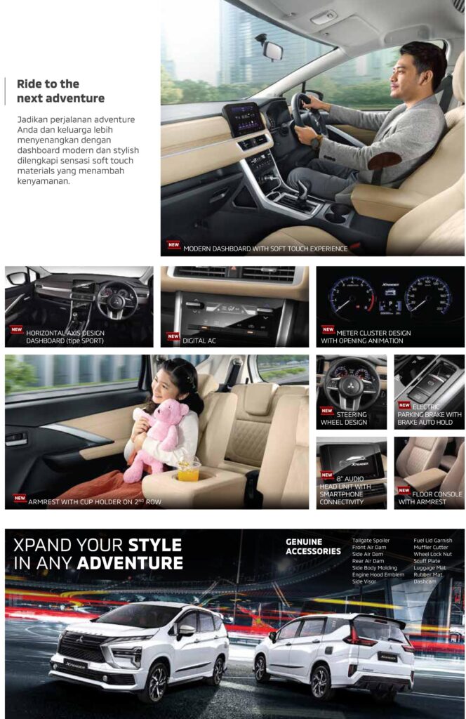 Selain itu, New Xpander menawarkan kemewahan dan kenyamanan pada sisi interior dengan kabin berkualitas tinggi. Terlihat ruang interior yang luas dengan total 19 ruang penyimpanan, serta pilihan konfigurasi kursi terbaik di kelasnya, memberikan kemudahan dan utilitas maksimal. Selain itu, New Xpander dibekali dengan pilihan transmisi New CVT, untuk pengalaman berkendara yang lebih nyaman, menyenangkan, memberikan efisiensi dan kenyamanan tinggi.
